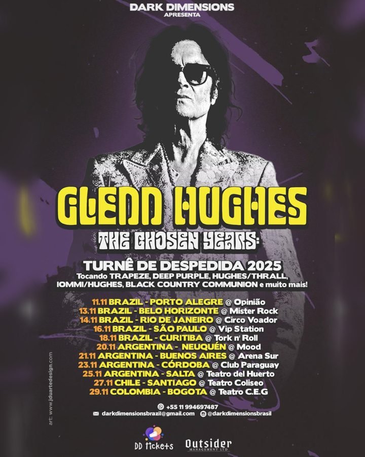 Preparem os corações e as gargantas, Brasil! Uma das vozes mais icônicas e respeitadas do rock, o lendário Glenn Hughes, está de volta ao país com a turnê “The Chosen Years” em novembro de 2025. Conhecido mundialmente como “The Voice of Rock”, Hughes promete uma série de cinco shows solo que são verdadeiros mergulhos na história do rock clássico. É a chance de reviver a energia de Deep Purple, Trapeze e de sua vasta carreira solo em uma única noite.
